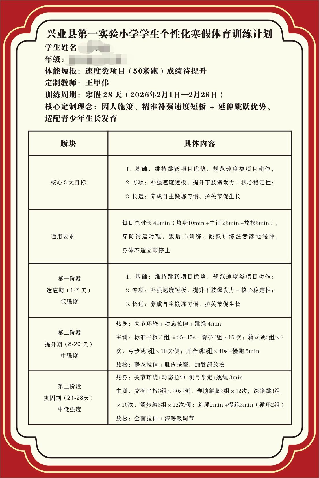 为学生制定个性化寒假体育作业
