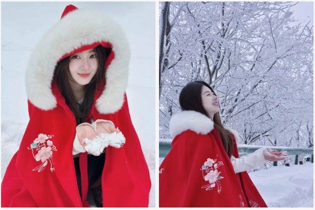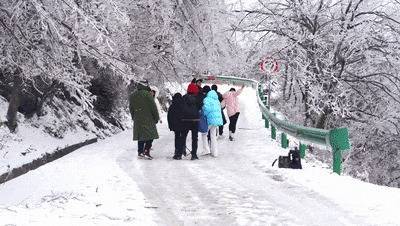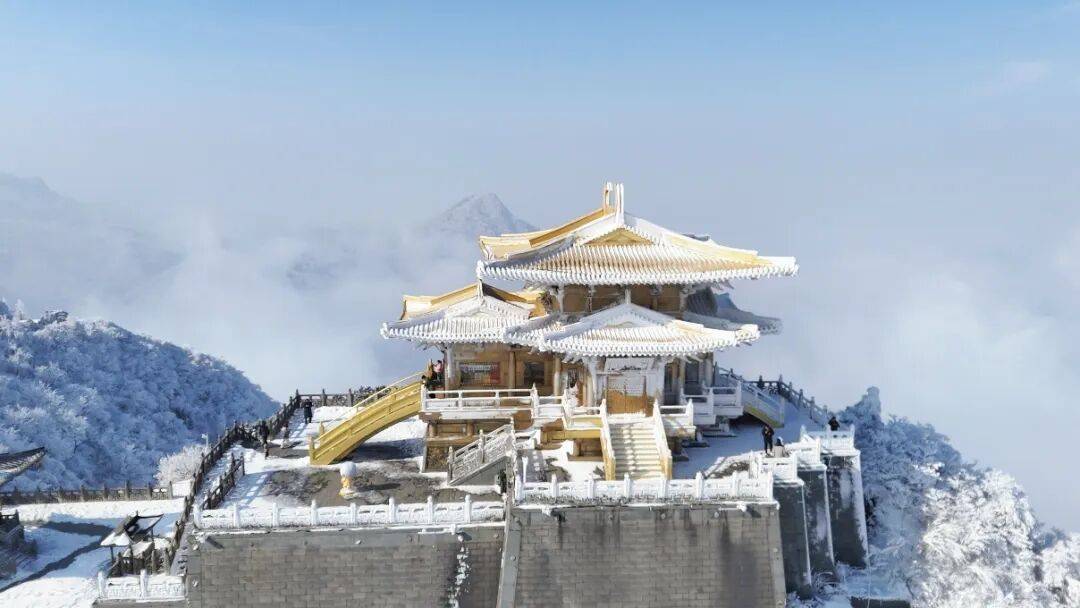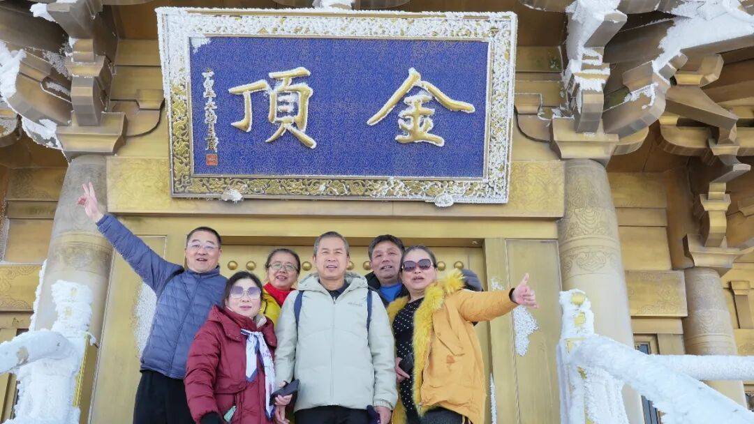 雪景与古风的碰撞,更成了此次出游的一大亮点。不少游客特意身着汉服前来,汉服的飘逸裙摆与皑皑白雪相映,自带清雅古风气质,仿佛穿越千年。来自武汉的李先生一家正在金顶合影,镜头里的笑容格外灿烂:“我们是特意驱车过来追雪的,出发前还担心雪天游玩不便,来了之后发现完全多虑了,景区的保障工作做得特别到位。”